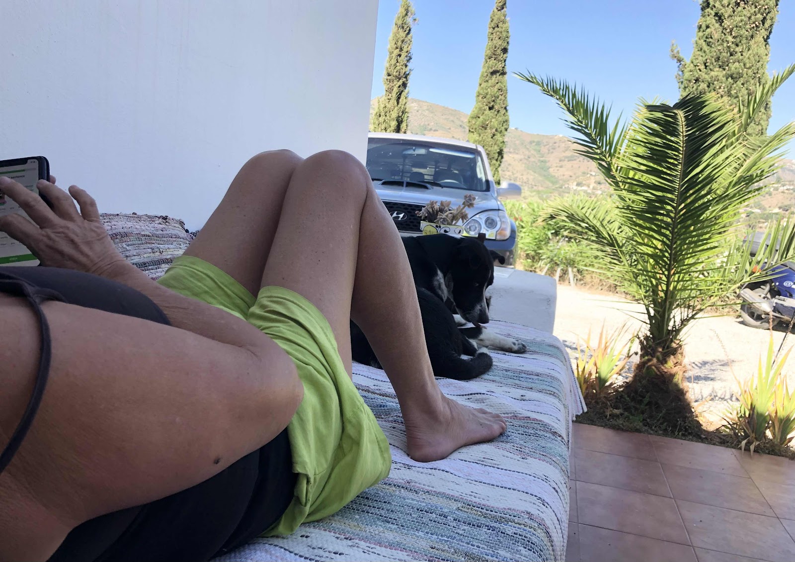 Nu är det varmt på riktigt. Vi får tillbringa förmiddagarna på husets västsida som ligger i skugga.