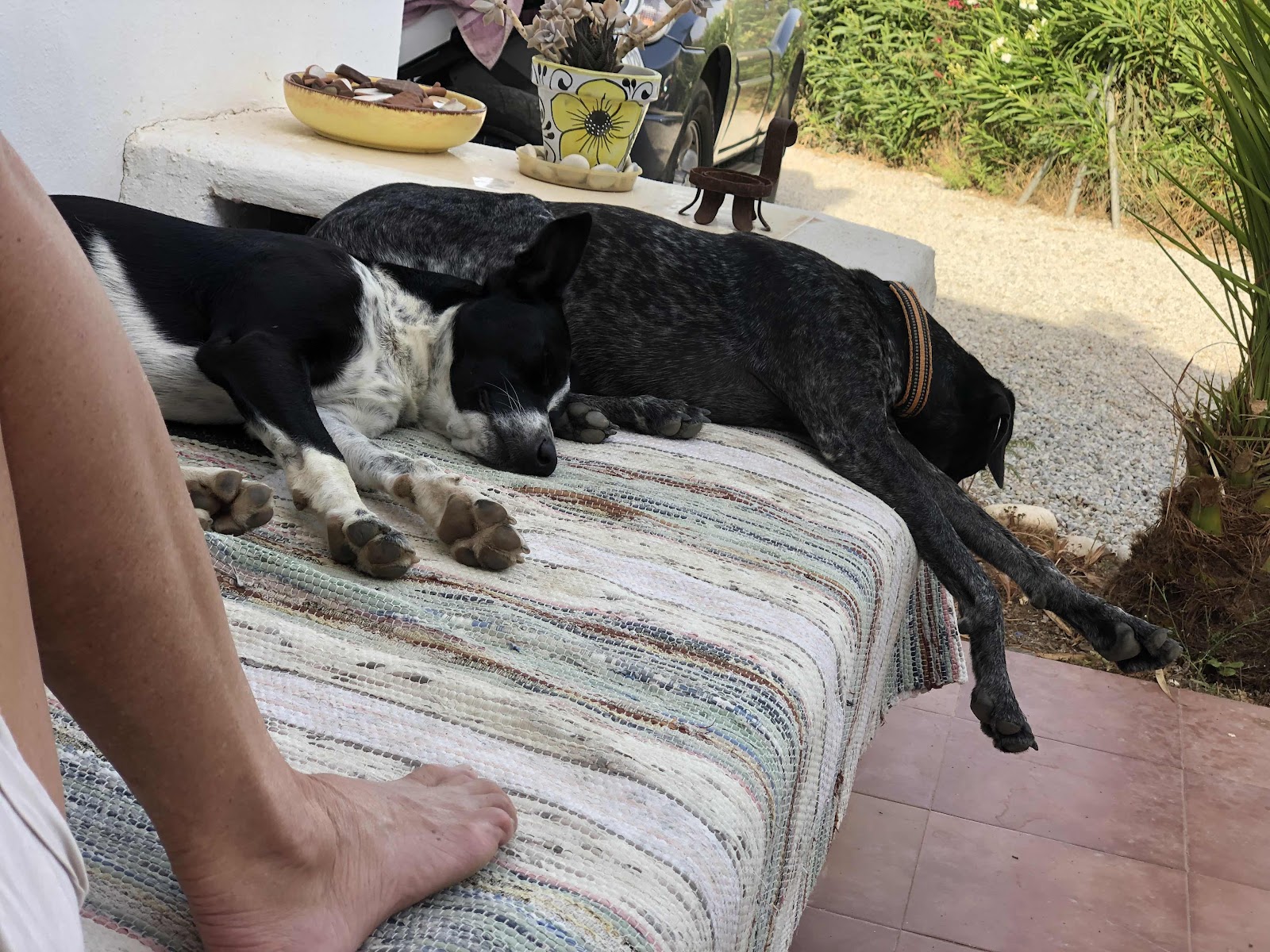 Tony kom o hämtade ett lass vatten. Sen fick han punka på släpet uppe vid Caracoles. Men det fixade vi snabbt. Bra med kompressor.