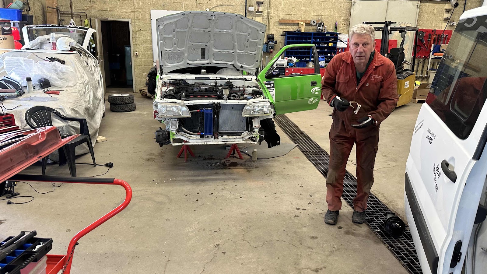 Intensivt fortsatt jobbande. S-Å o jag i verkstan. Figge hämtar grejor.
