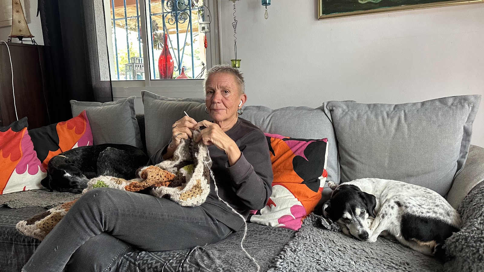 Britta tog ut honom i parken så han fick springa av sig. Jag ropade genom fönstret på fjärde våningen. Han fick syn på mig o gick helt bananas. Vilken tröst han är ♥️.