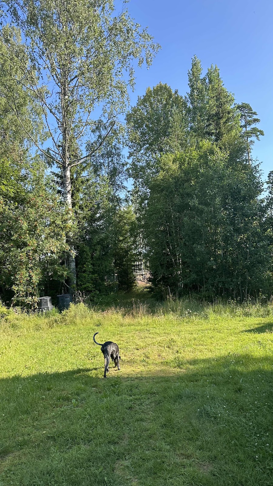 Bm hade köpt kattgodis i stan som den lilla var helt ointresserad av. Den ville bara kela. Walter visste inte hur han skulle bete sig. Men en bra början. Han har något stirrigt i blicken som han aldrig skulle ha mot en annan hund. Vi får vara försiktiga.