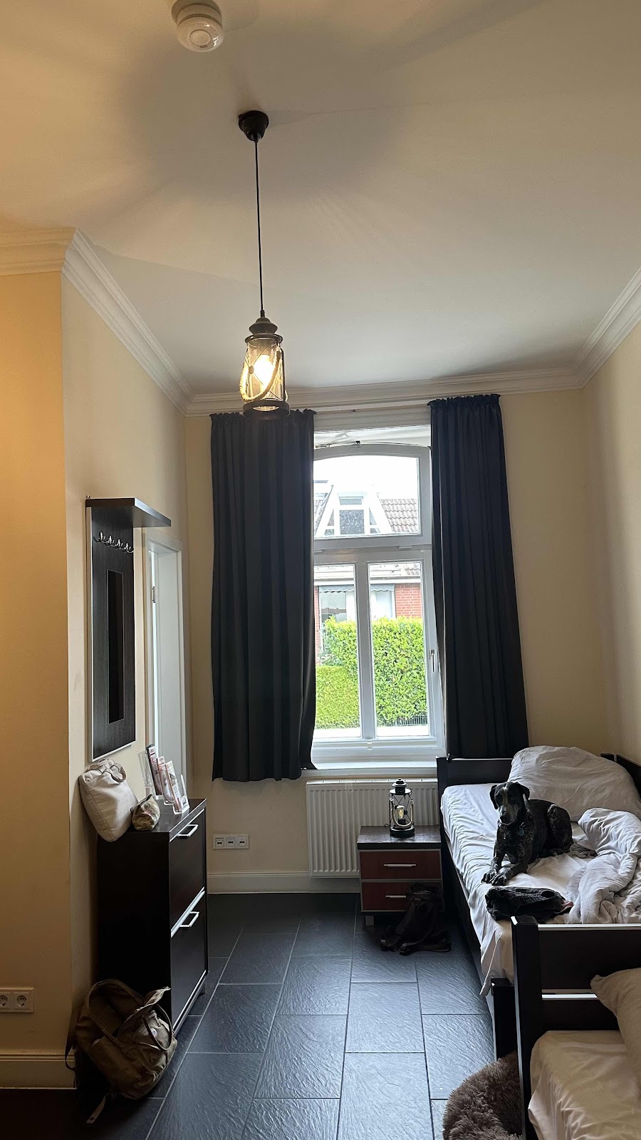 Högt i tak. Gammal institution gissar vi. Men man hade gjort det så trevligt som möjligt. Britta fixade frukost på rummet.