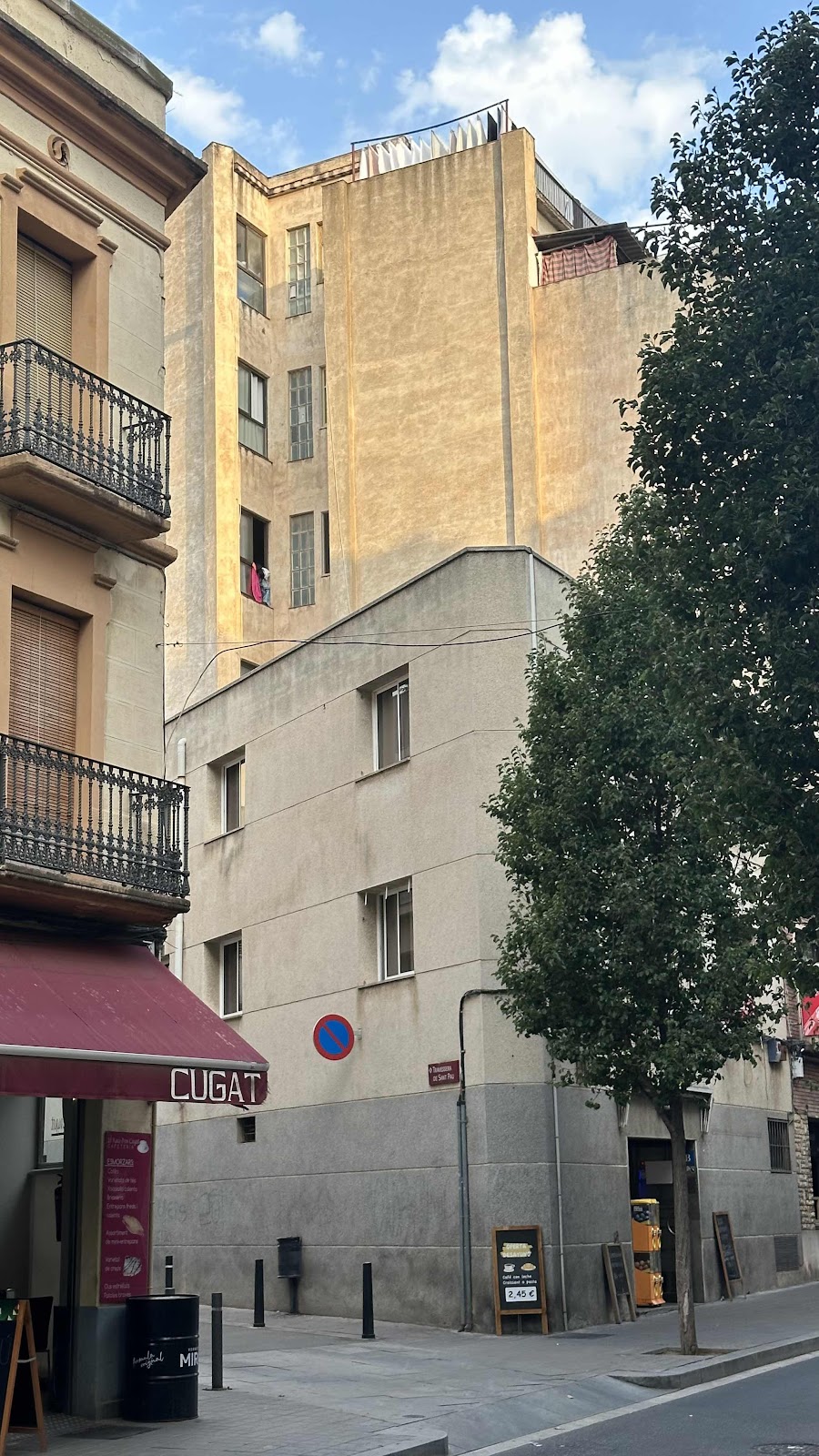 Våningen ovan fönstret med kläder bodde vi på.
