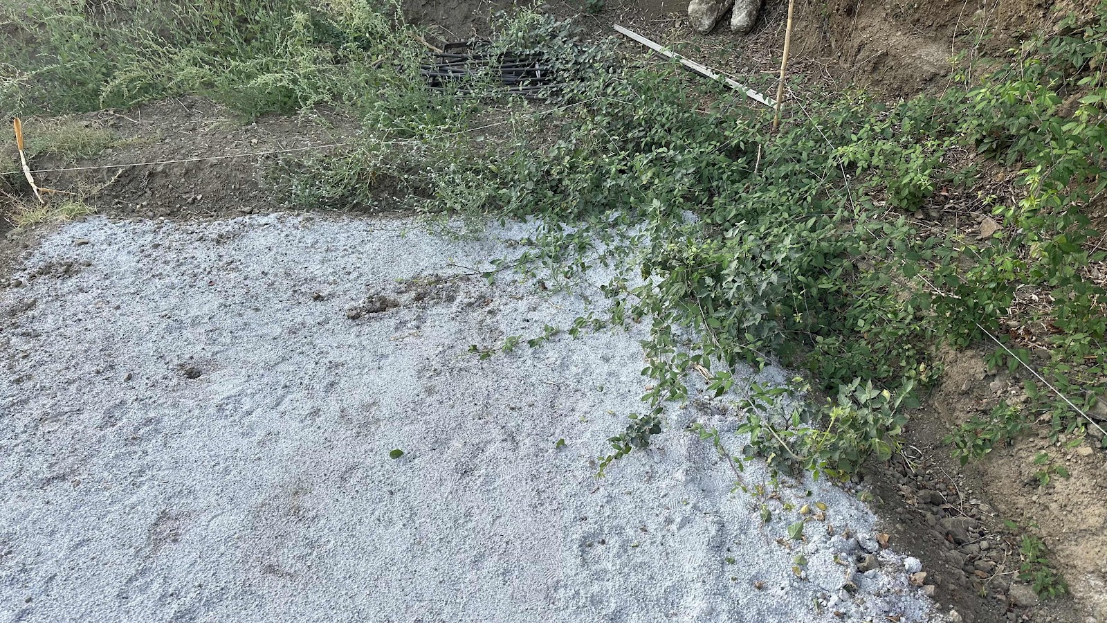 På bara sex veckor har björnbären börjat invadera grusbädden för det planerade förrådsbygget. Trots torkan.