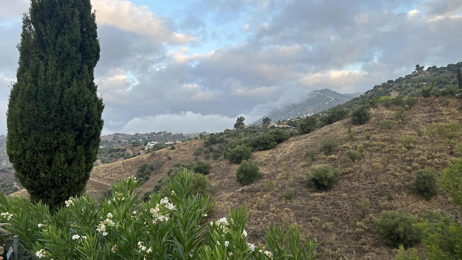Oj va mörkt där över Competa. Fuktig morgon. Tror nog många växter här har förmågan utnyttja det.