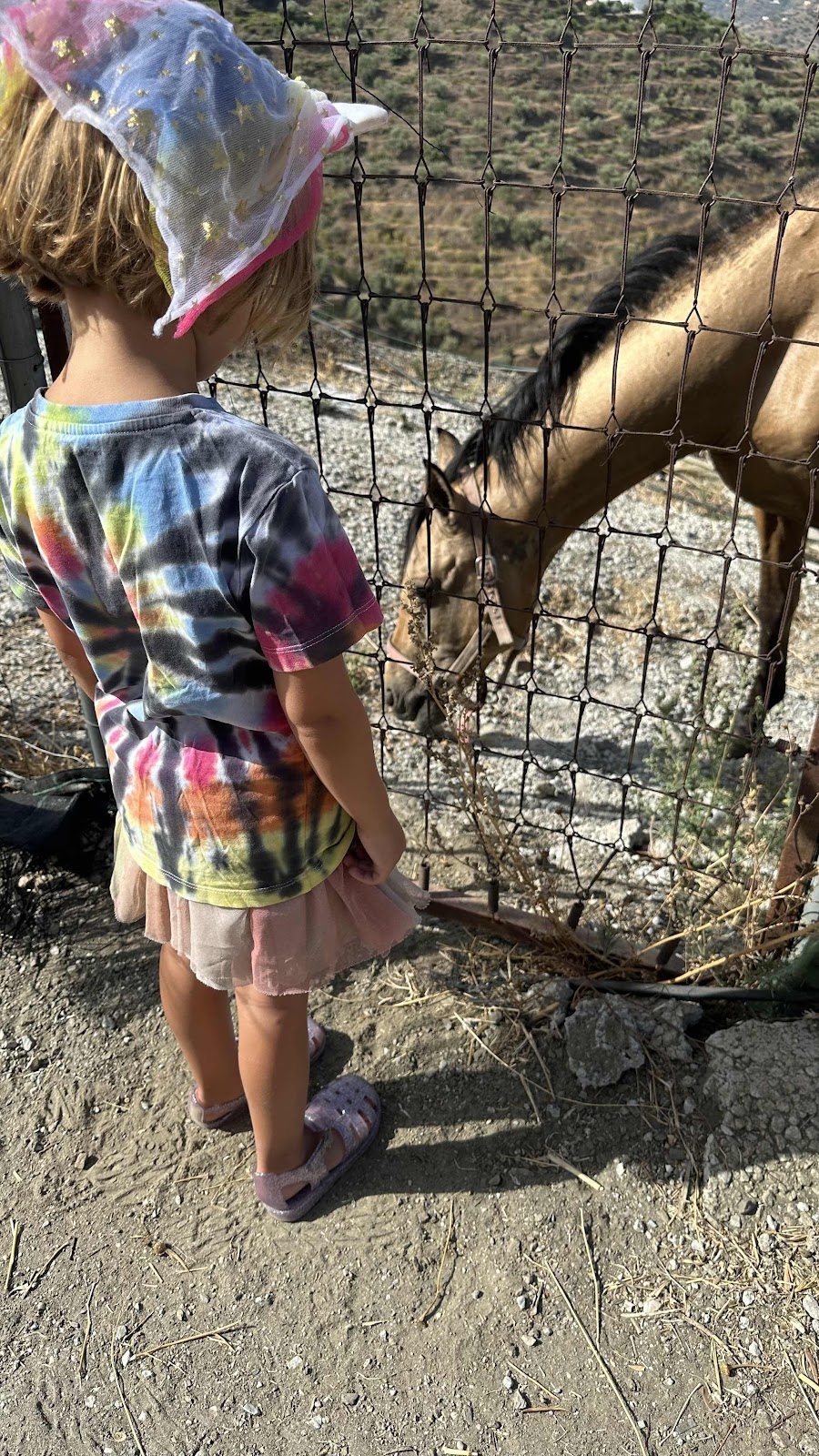 Tog med Electra upp till ”Hästen”…som ju heter Ninja. Såg inte ut att finnas mycket gräs där hon stod så tror säkert hon uppskattade ett par morötter och några äpplen. Spännande för lilla tjejen att mata.