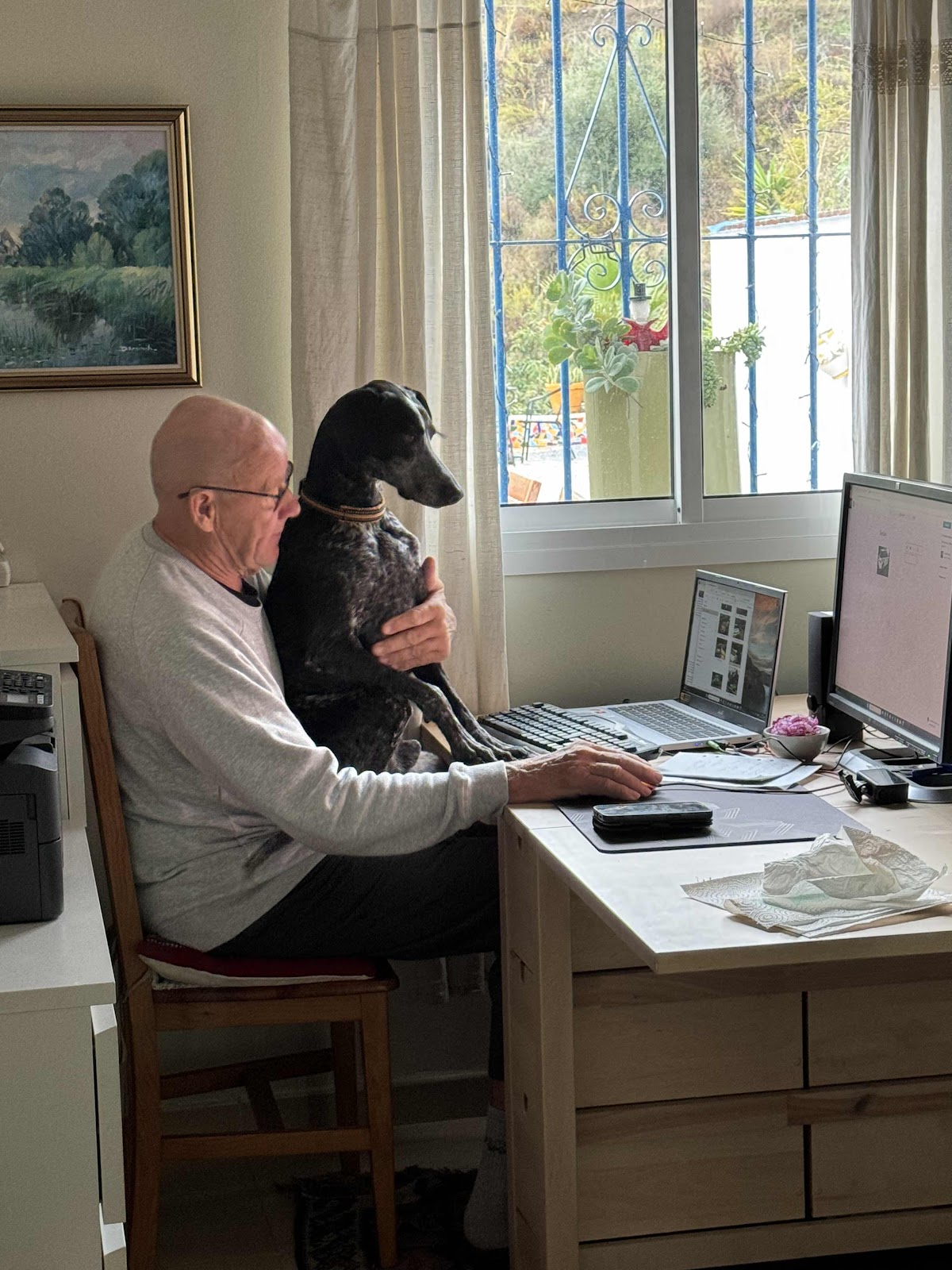 Med mycket värme i rummet kan man ju sitta o jobba trots förkylning. En rastlös kille ville hjälpa till.