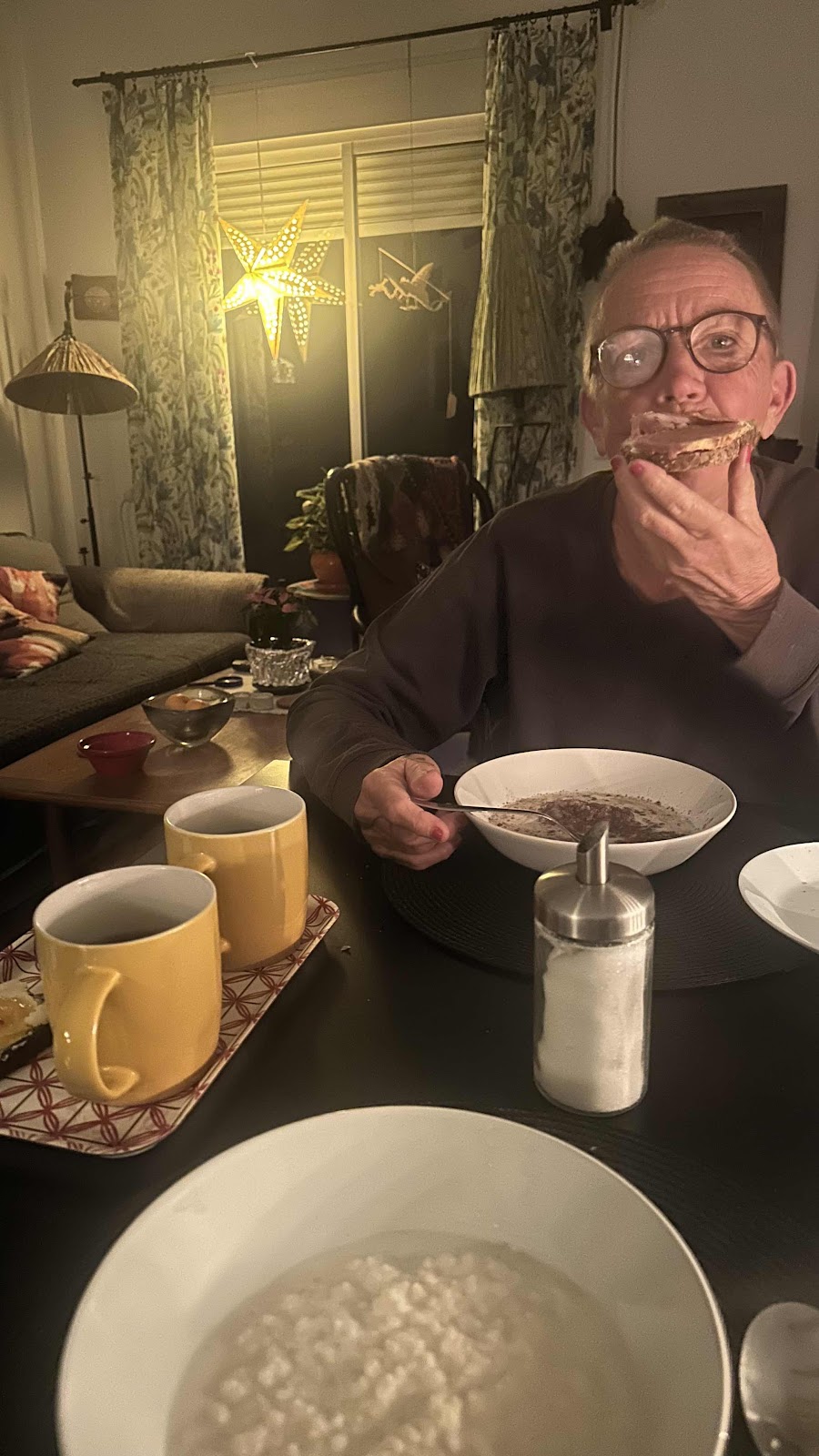 Efter ett par timmars intensiv körning var vi hemma igen till Brittas jultallrik. Då hade vi bara åstadkommit 75 kilometers körning.