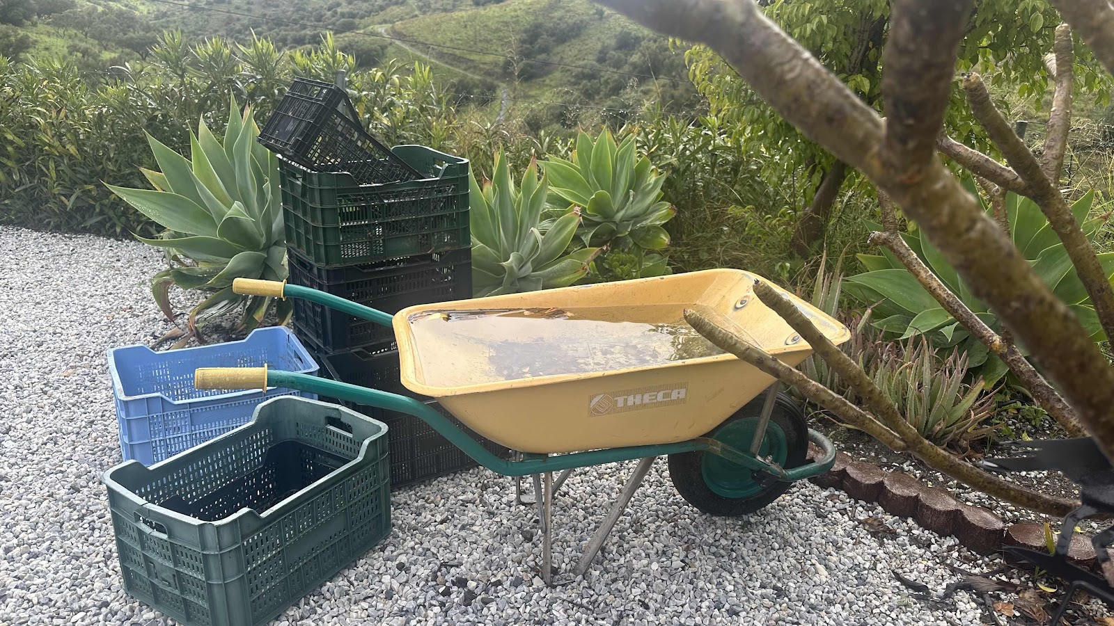 Sjukt mycket regn. I onsdags ställdes skottkärran här. Nu är den full !!