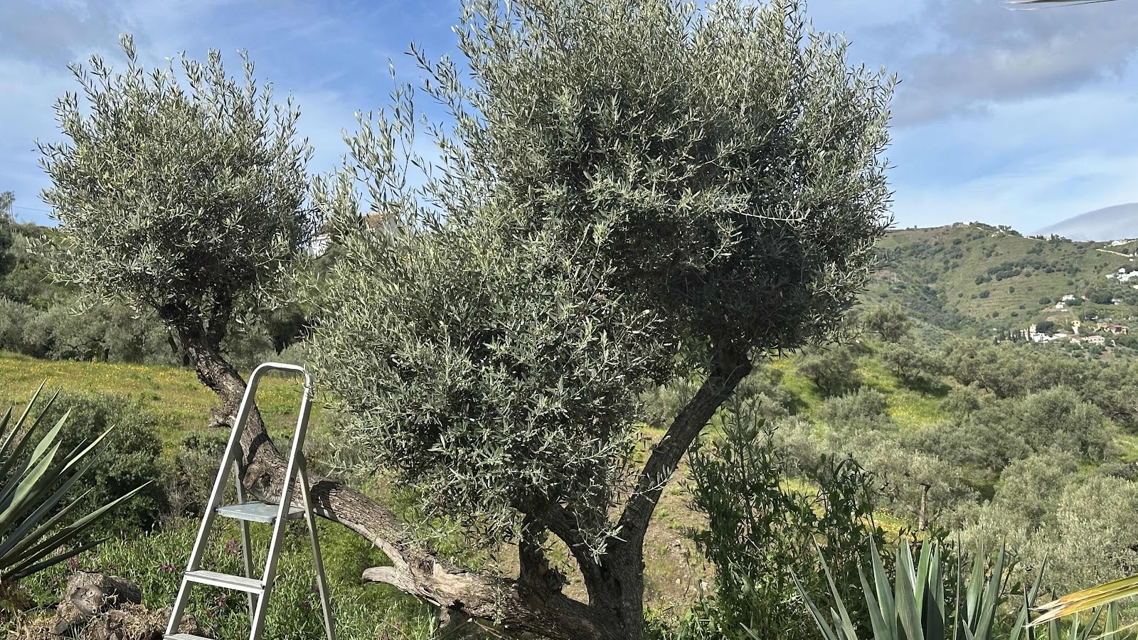 Lilla ”ön” till vänster i slänten är en totalt överväxt vinranka. Det får bli Brittas uppdrag att rädda den med.