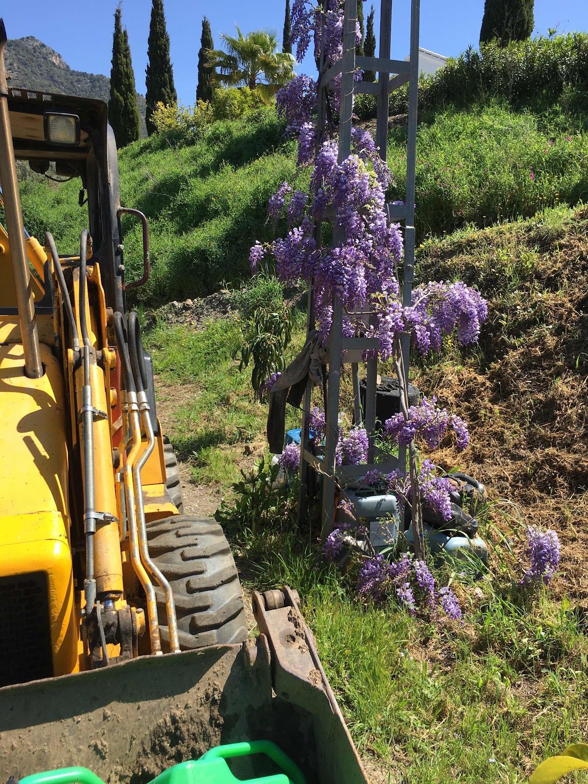 Häftig blomma som klättrat upp i hela elstolpen o långt ut på ledningen. Britta fick den som en död pinne.