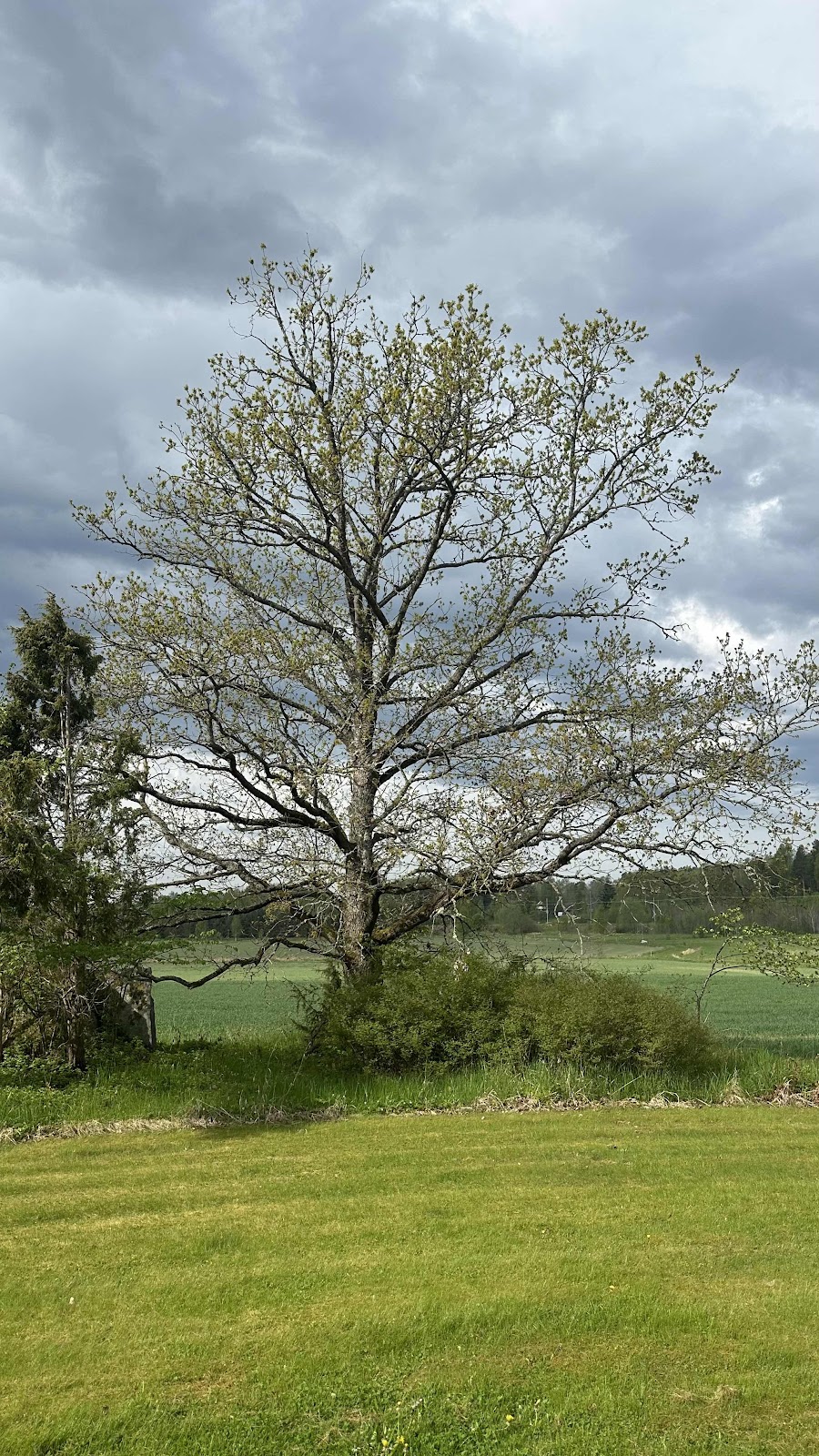 Dags säga hej då till Figge o tacka för gästfriheten denna gång. Hans stora ek har börjat grönska ordentligt på två veckor