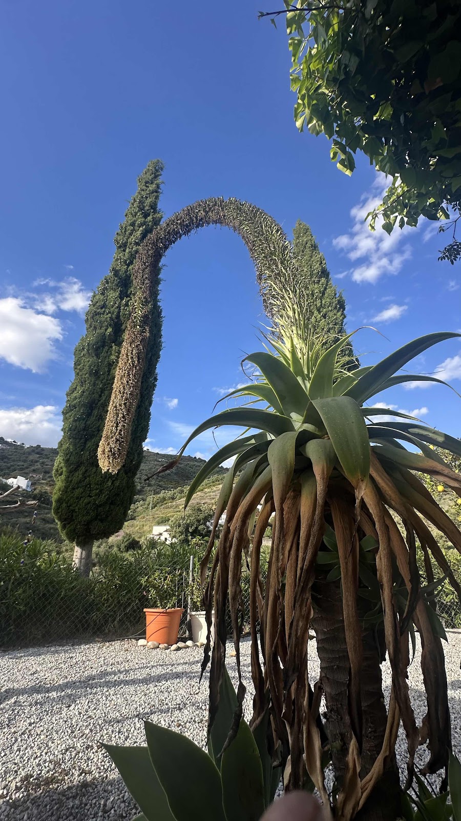 Väl hemma blev det jobbarbyxor på. Nu har vi tagit beslutet att ta bort vårt jacarandaträd som ibland är en riktig prydnad men oftast inte. Tyvärr tar den viktig plats och alltför ofta skräpar ner alldeles förfärligt.