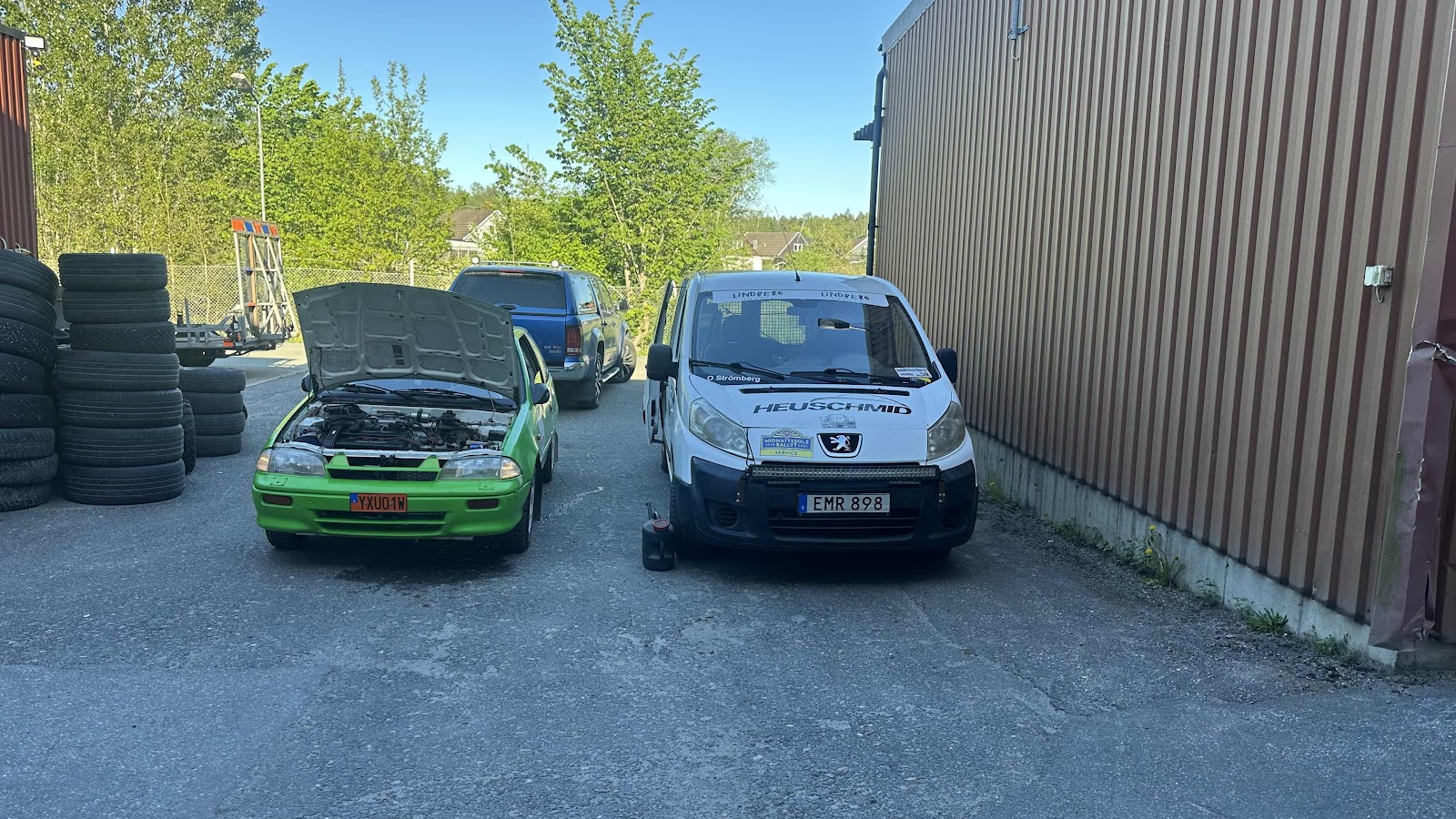 Dök upp en skitglad gubbe i morse på servicen. Ett riktigt SAAB-fan. Han hade foton med sig han ville jag skulle signera. De där klassiska från RAC och Sutton Park 1977. Andra sanna entusiaster ör ju Simon och Lars Nilsson från Jonstorp. De tävlade inte utan servade åt en kompis. Detta blev vårt Waterlo. Efter kilometerlånga rakor med mängder av krön tog vi fel på ett. Svag ingång höger när vi kommer urvarvat på femman på sista sträckan. Vi ville gärna försvara vår andraplats. De va inte svag höger. De var skarp vinkel vänster... Vi hade kommit i otakt på ett av de många krönen. Det blev tvärstopp mot en kronsten fast lite energi rullades bort när vi hamnade på taket. Folk välte rätt oss innan vi kunde kliva ur. En slagen hjälte med blå tunga o en löser tand. Sedan en massa ömma muskler. Britta klarade sig nästan helskinnad tack o lov. Tre timmars väntan i skogen, sen lift in till Herrljunga där jag fick suverän hjälp att plocka ih...