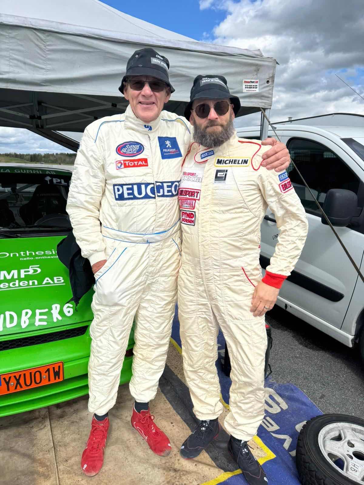 Far och son Strömberg uppklädda för race. TACK snälla Lena för de fina overallerna 🙏♥️.