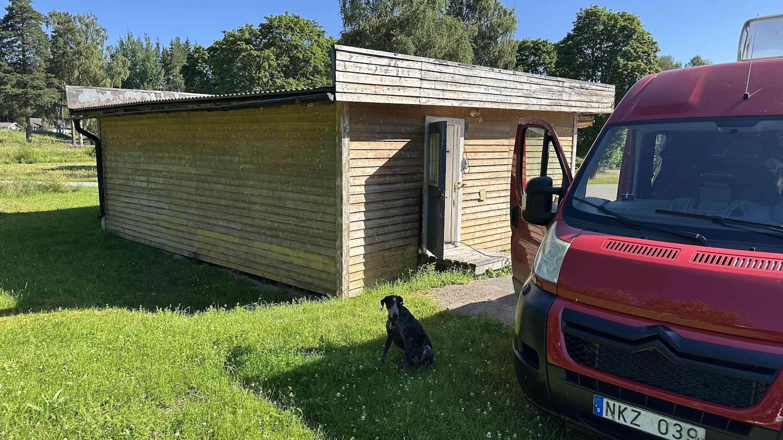 Sen skulle vi hämta lite reservdelar hos JanErik i Blötberget där vi har vår förrådskiosk. Kom på att den ju skulle målas efter blästringen.