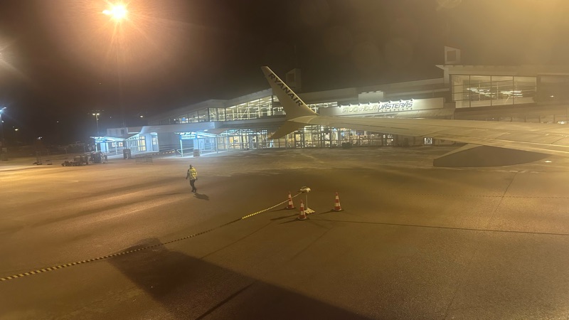 Landade före tidtabell. Men slapp vänta. Nils Moberg var redan där för att ge mig skjuts.