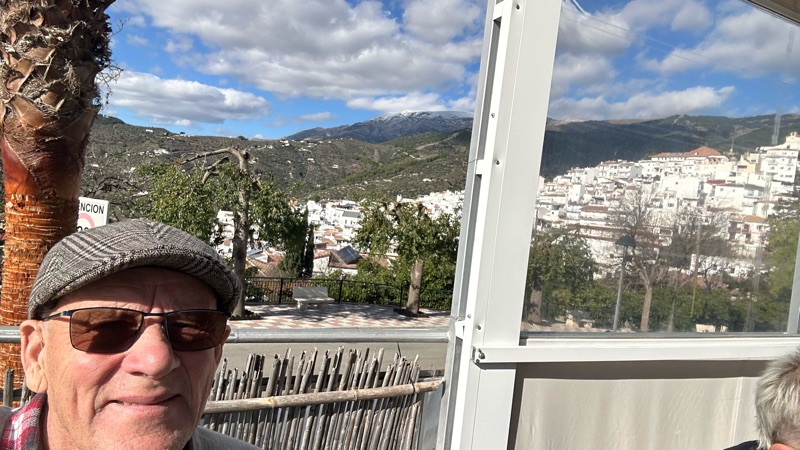 Sen upp till Competa, Archez o Canilla de Albaida där det blev fika o en bocadillo. Kolla noga så ser ni snö på ett berg. Malagas högsta o heter La Maroma 3069m över havet. Som Sveriges högsta. Alltid kallare högre upp.