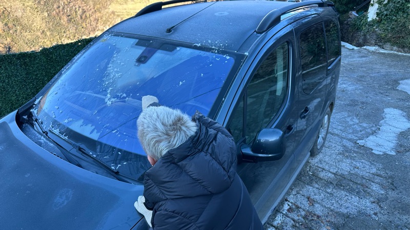 Fram med isskrapan i morse.