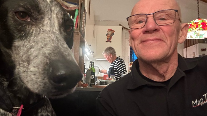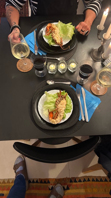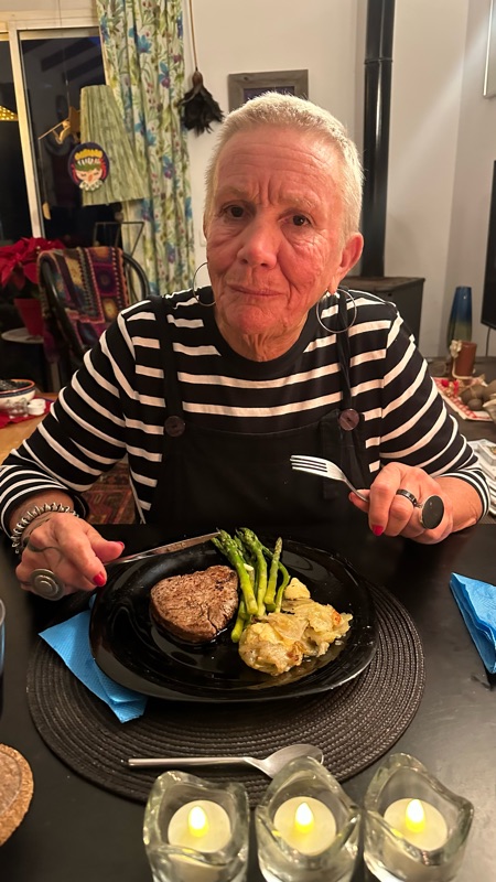 Efter att ha chillat hela eftermiddagen och kärrat upp lite ved o fixat en läcka vid vattenmätarna så sitter Walter o jag o väntar på en god förrätt.