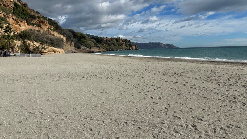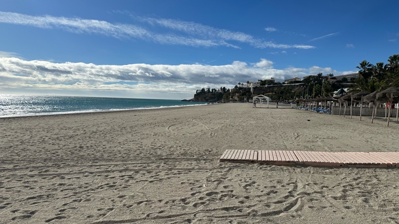 Målet var Burrianastranden. Man förstår att det är rätt så kallt. Inte många själar här.