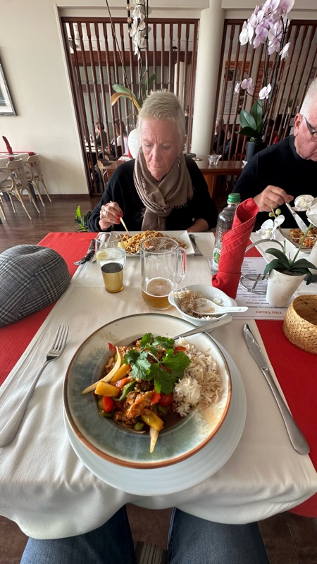 Thaimat på menyn. Jag blev riktigt nöjd. Nummertjugosju var jättegod. Britta tar garanterat den nästa gång.