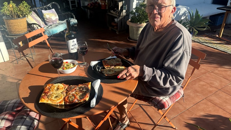 Britta hade bakat pizza idag. Proppmätt.