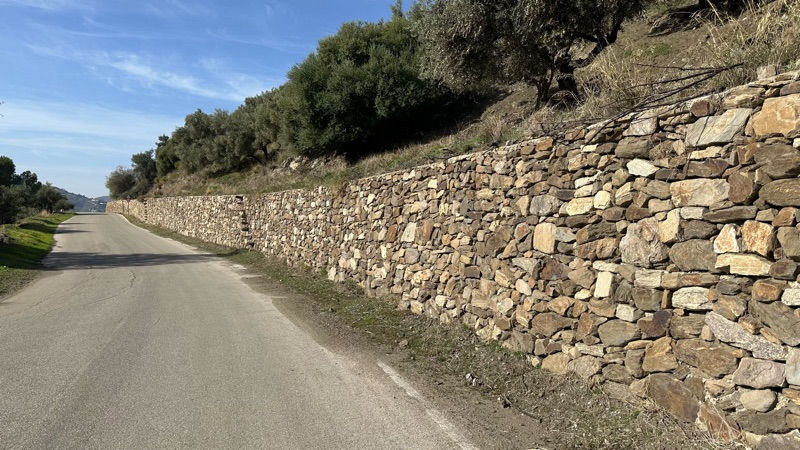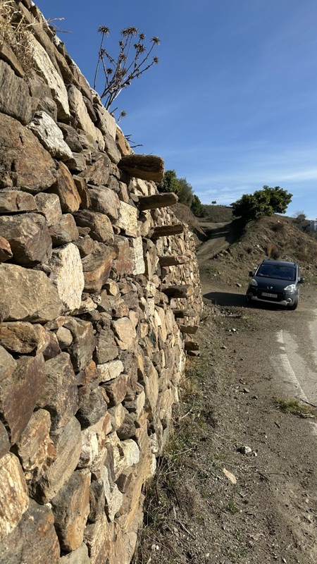 Jättefin mur. Visst är det coolt hur man har byggt in trappsteg längs hela vägen.