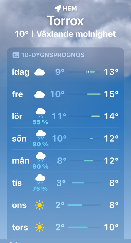 Grått, kallare o regn de närmaste dagarna. Redigt kallt ser det ut att bli.