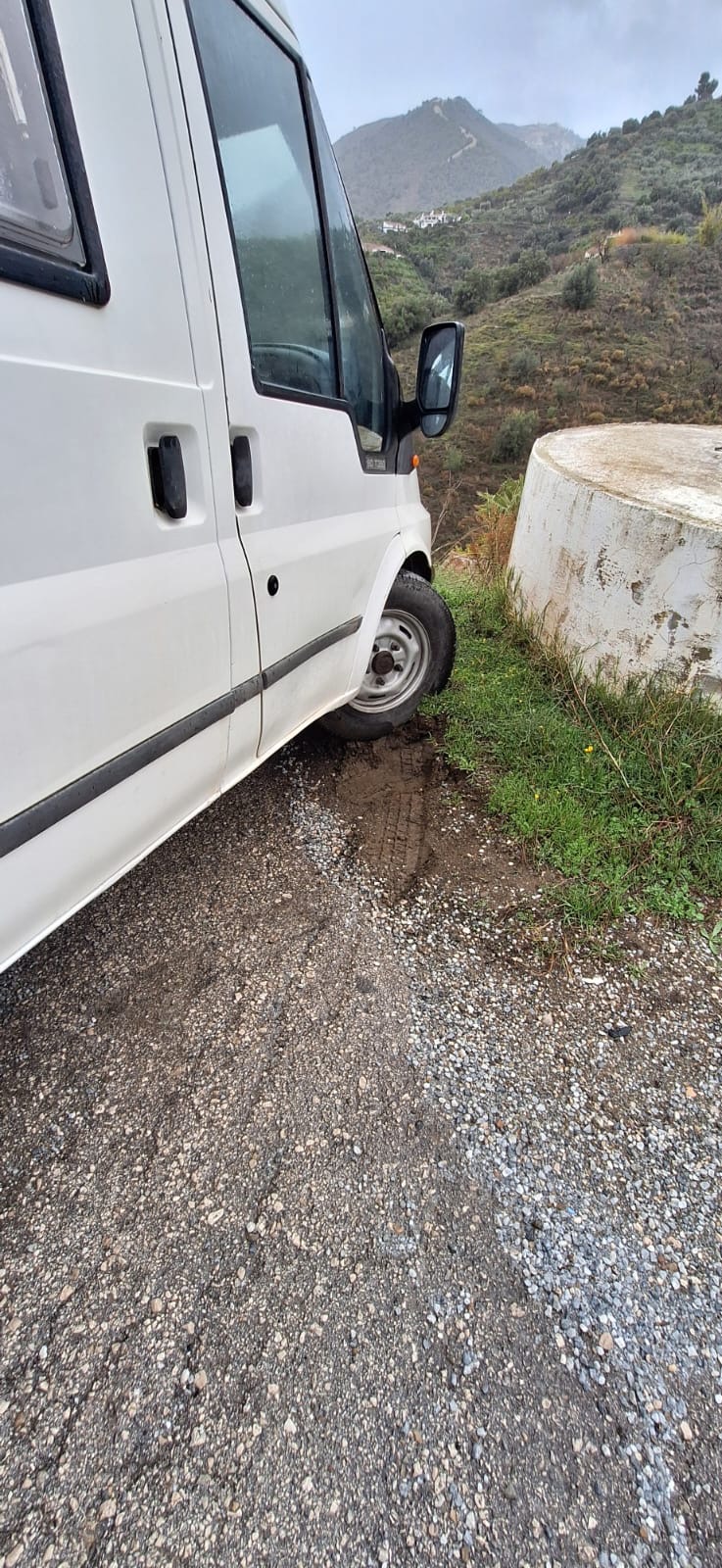 Min (slarvige) granne hade kört fast med skåpbilen samtidigt som den blockerade vägen. Kunde inte komma förbi för att dra tillbaka bussen. Fick bli rep om framvagnen o dra neråt och åt sidan.