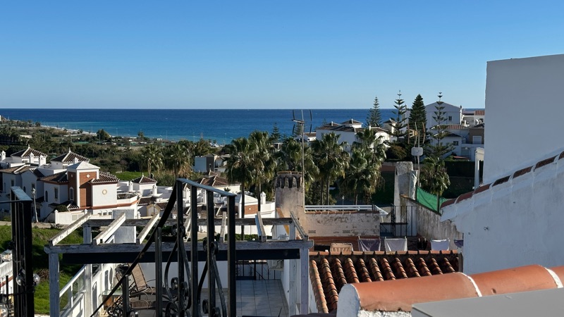 Sen chilla på deras takterass tills damerna kom tillbaka fr shopping i Velez-Malaga.