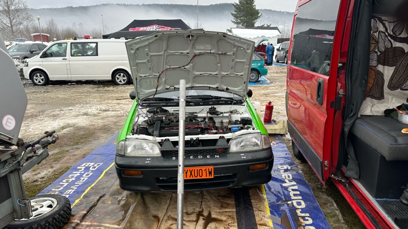 Däcken höll långt över förväntan, så här kom alla olyckskorpar på skam. Visserligen svårkört. Men det ska ju en rallyförare kunna hantera