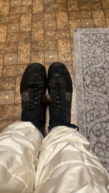Åter hemma hos Figge i Frövi kunde jag ta av mig mina rallyskor från 1980-talet. Jag ville ju inte blöta ner mina fina röda.