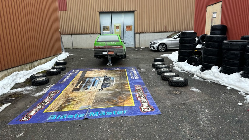 Däcken fick stryk men höll bättre än väntat. Kunde köra på samma fram hela tiden. Nu har de gjort sitt.