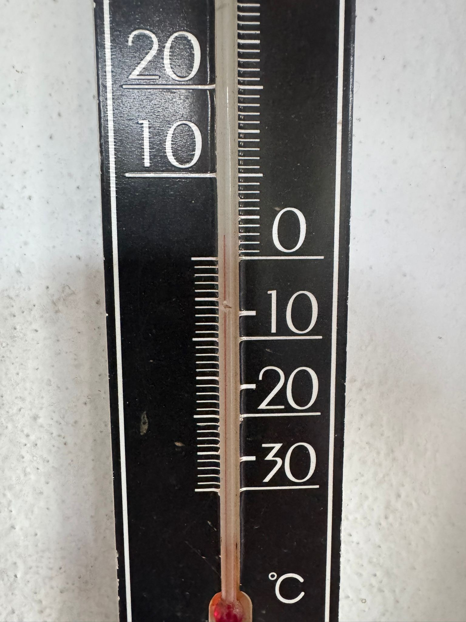 Först ett foto på vår termometer hemma i Spanien. Det kunde lika gärna vara från Figges här i Frövi. Rekordkallt!