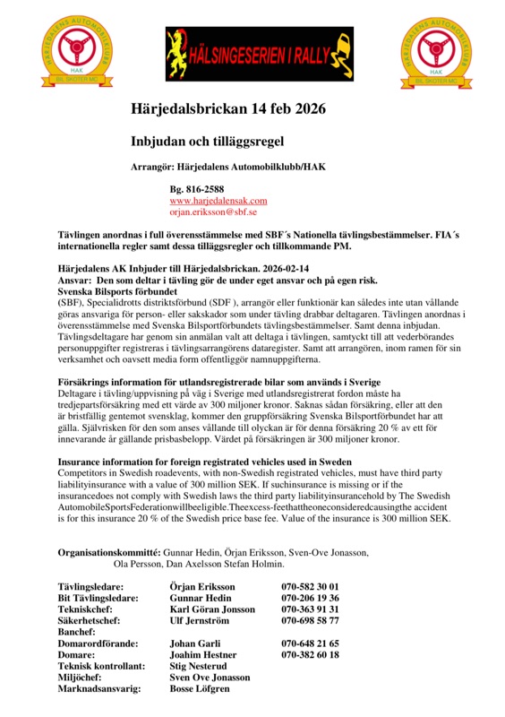 Tyvärr blev favoriten LBC-ruschen i Lima inställd. Då fann Ola på goda råd och fixade ett avtal med Härjedalens Automobilklubb som arrangerar Härjedalsbrickan samma helg. Så nu blir det att åka till Sveg istället.