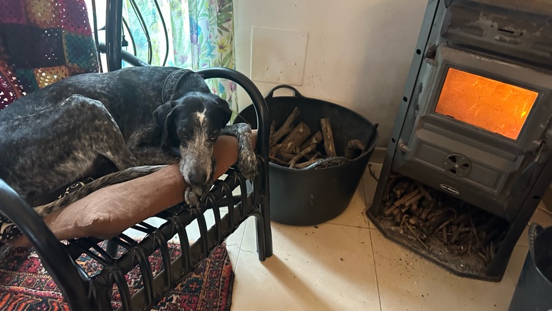 Det här är min favvostol nära kaminen (bara 8 g grader ute nu). Tydligen även Walters åxå. Han ställer sig o bara stirrar på mig om jag råkar sitta där.