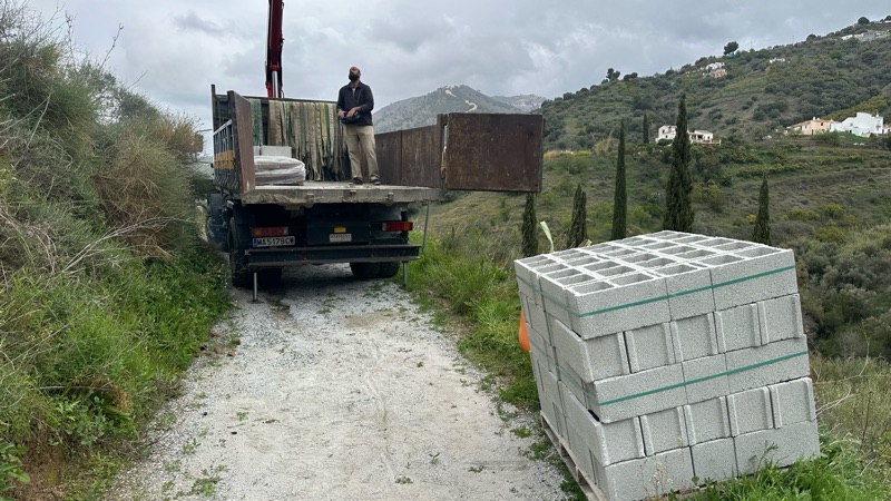 Upp åtta för att ta emot byggmaterial som Iván kom med.
