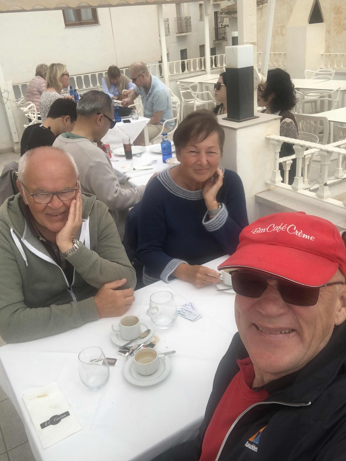 Sen hem o kamma sig innan vår träff uppe på El Casinos terass.