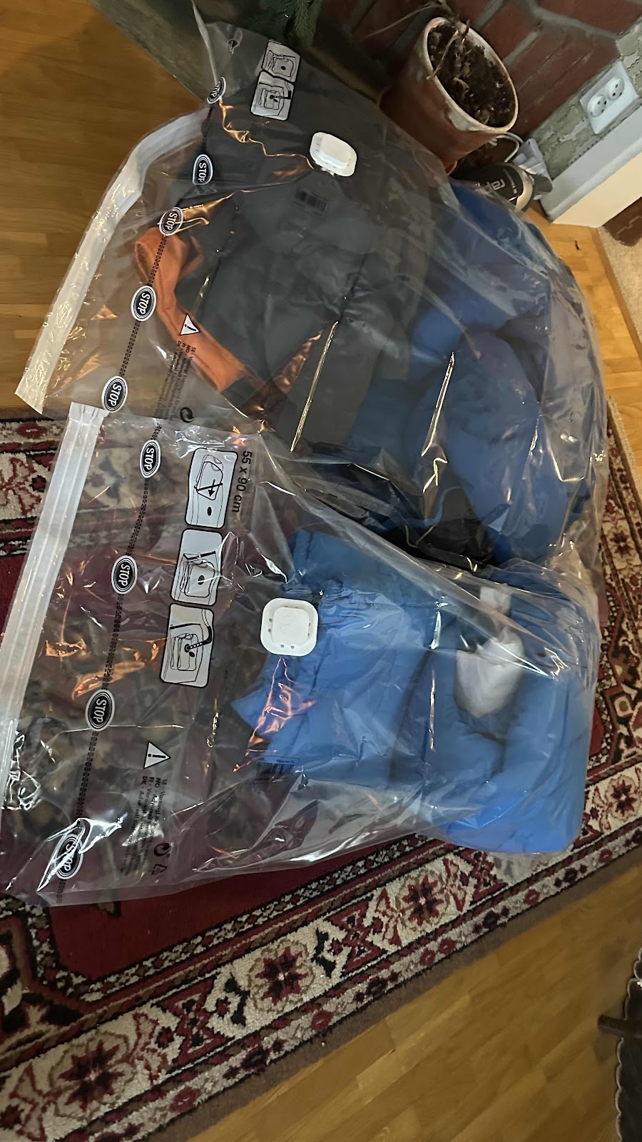 Köpte några vacuumpåsar till ”avåkarkläder” i rallybilen. Fick ett par över som jag tänker använda hos Figge så jag får ner allt i en väska.