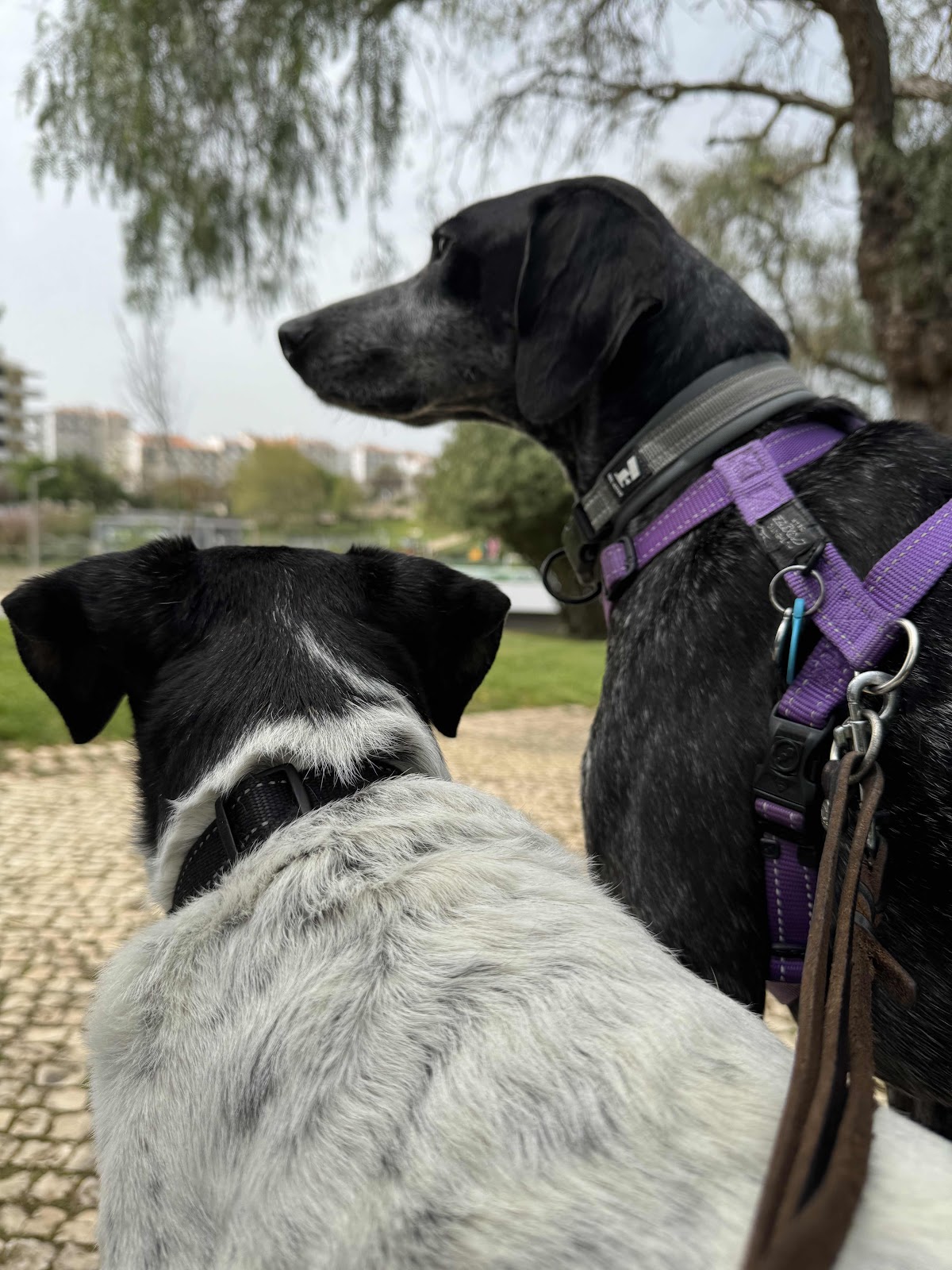 Britta tog ut honom i parken så han fick springa av sig. Jag ropade genom fönstret på fjärde våningen. Han fick syn på mig o gick helt bananas. Vilken tröst han är ♥️.