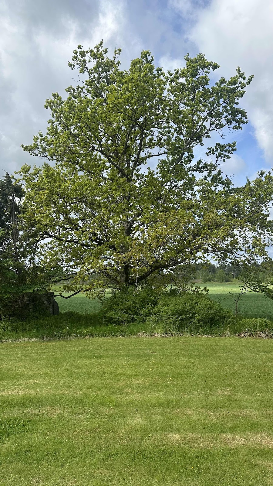 Dags säga hej då till Figge o tacka för gästfriheten denna gång. Hans stora ek har börjat grönska ordentligt på två veckor