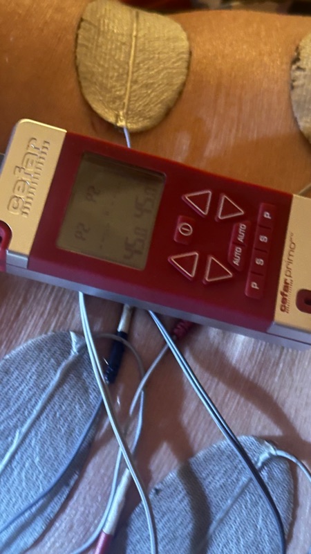 För övrigt fortsätter syster Britta min ryggbehandling Nu står den i läge "45" och jag kan intyga att det känns. Man tror att hela ryggen hoppar men det syns inte