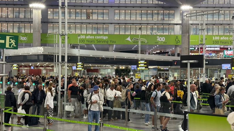 Sjukt mycket folk på flygplatsen redan före fem på morgonen.