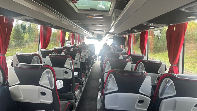 Bussresan tar nära tre timmar. Kunde sova lite. Många gick av i Västerås.