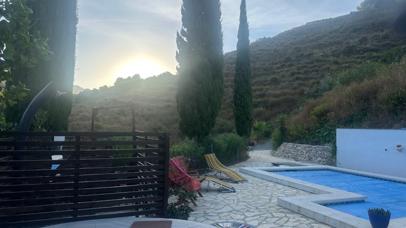 Segt nu. Bergskammen ligger förargligt i vägen. Nio o inget solsken. Under 28 i poolen. 😕