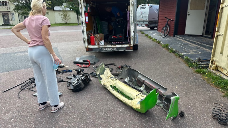 Men jag är ju rätt van vid sånt numera. De skyller på att de inte får tag på reservdelar som jag sen hittade på två dar. Nåväl, snart körbar Bara för dem att besikta Ja till och med besiktningstiden fick jag ordna åt dem.