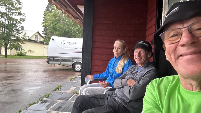Sen var det bara att sitta o vänta på Figge o Brittmarie där i skydd av spöregnet. Tacksamma det inte regnade på dan.