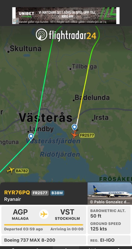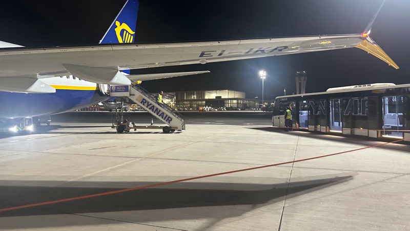 Efter tre timmar kom ett reservplan (det till höger) från Arlanda. Inte var dag det står två Ryanairplan på Västerås flygplats.