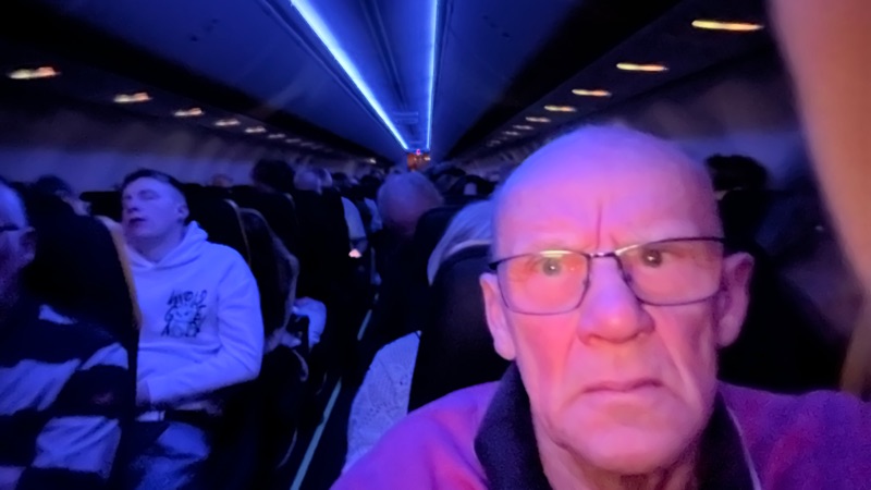Resan var vidrig. Planet var äldre och om möjligt tätare mellan stolarna. Mina knän satt stumt mot ryggstödet framför. Urtrött men kunde inte sova.